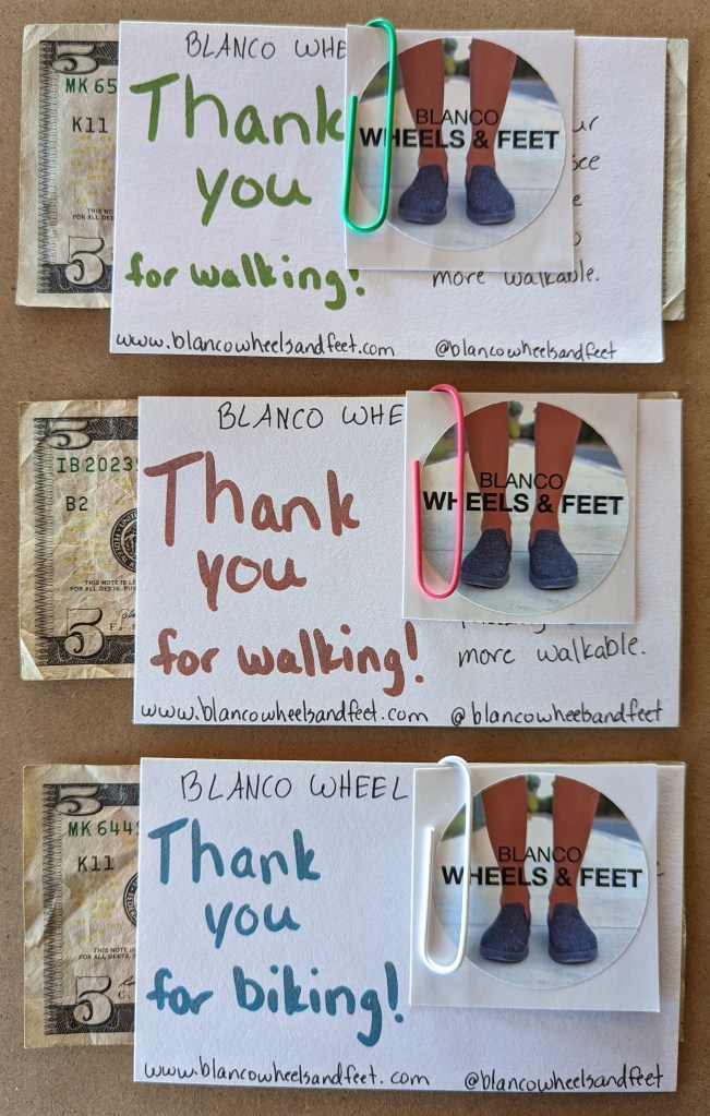 If we spot you walking or riding a bicycle in Blanco, you might win our Pedestrian of the Day award!